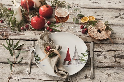 Kolekcja ÅSA’S CHRISTMAS urzeka przepięknymi dekorami. Motywem przewodnim zastawy są skrzaty i oprószone śniegiem świerki, których gałązki mienią się prawdziwym 18-karatowym złotem! To sprawia, że ta na pierwszy rzut oka urocza kolekcja nabiera prawdziwie wytwornego wyglądu. Na uwagę zasługuje także sam kształt talerzy, półmisków czy wazy – przypomina śnieżne zaspy, przez co ÅSA’S CHRISTMAS jest wręcz idealna jako (nie)spodziewany gość przy świątecznym stole.